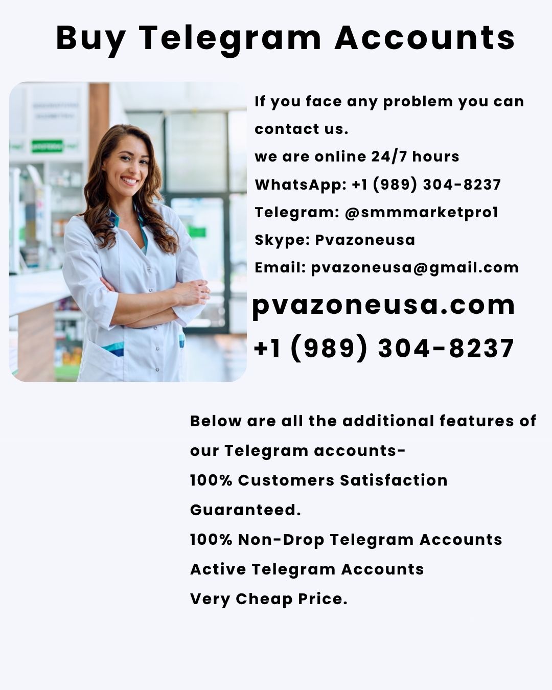 Buy Telegram Accounts If you’re looking to buy Telegram accounts, We offers a reliable and secure solution. Whether you need accounts for marketing, automation, or group management, verified Telegram accounts can help you scale your efforts quickly. These accounts are ideal for businesses, influencers, and agencies aiming to expand their reach on Telegram. With Pvazoneusa, you can purchase high-quality, phone-verified Telegram accounts that ensure stability and long-term usability. Below are all the additional features of our Telegram accounts- 100% Customers Satisfaction Guaranteed. 100% Non-Drop Telegram Accounts Active Telegram Accounts Very Cheap Price. High-Quality Service. 15 Days replacement gurantee Extra Bonuses for every service. 24/7 Ready to Customer Support. If you face any problem you can contact us. we are online 24/7 hours WhatsApp: +1 (989) 304-8237 Telegram: @smmmarketpro1 Skype: Pvazoneusa Email: [email protected]