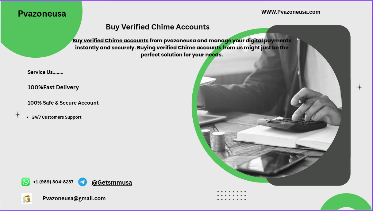 Buy Verified Chime Accounts Looking to buy verified Chime accounts? Visit Pvazoneusa for secure, reliable, and ready-to-use Chime accounts. Whether you’re managing business finances or seeking a convenient personal banking solution, pvazoneusa.com provides fully verified accounts tailored to your needs. Each account comes with verified credentials, ensuring safety, easy access, and smooth financial transactions every time. Below are all the additional features of our Chime accounts- 100% US-verified Chime Bank Account The number verified and accessible Email verified and accessible ID/Passport/Driver’s License verified US SSN fully verified Bank verified Business details verified Aged/New Account Available. Replacement Guarantee 24/7 customer support Money Refund Under 24 Hours If Account not Work. If you face any problem you can contact us. we are online 24/7 hours WhatsApp: +1 (989) 304-8237 Telegram: @Getsmmusa Email: [email protected]