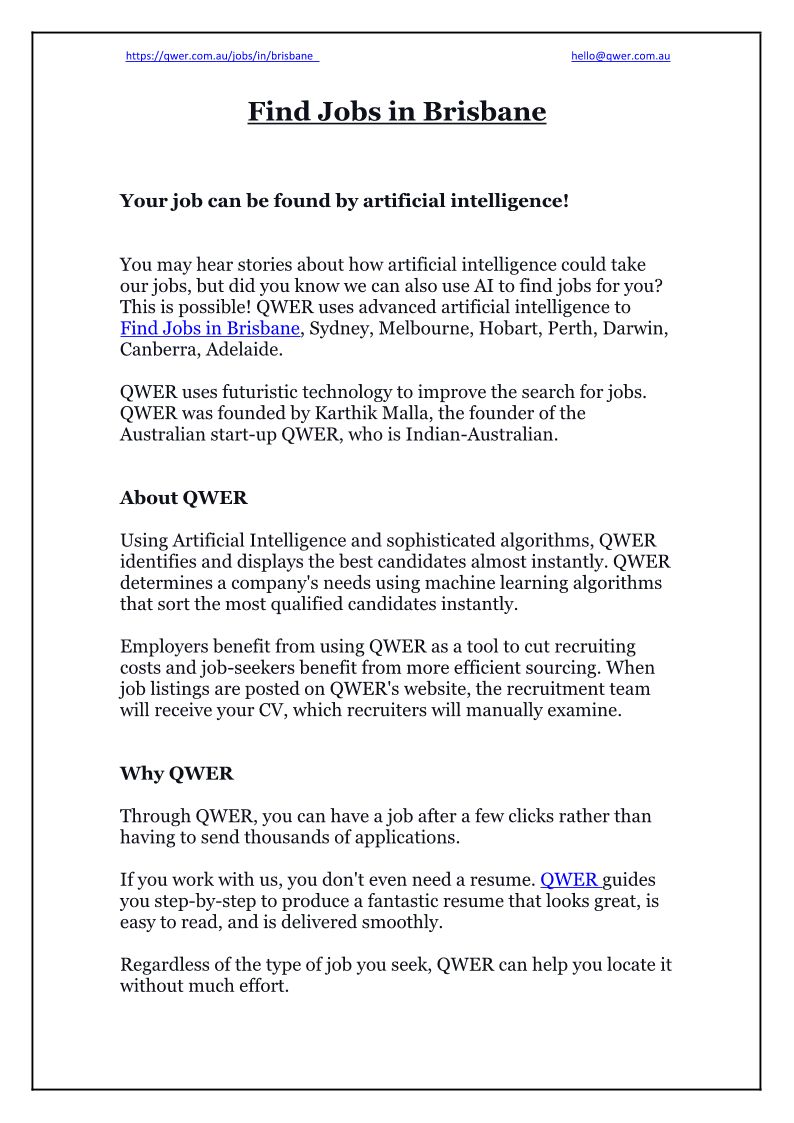 Whether you are looking for a full-time job, part-time job, farm job, part-time job, or a professional job, QWER can help you locate it for no effort at all. Jo