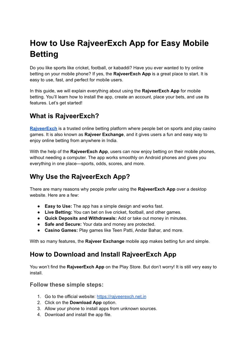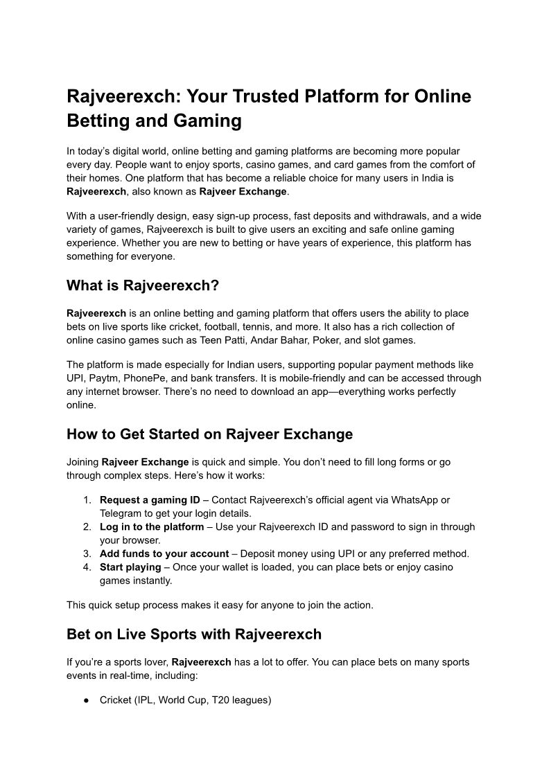 RajveerExch provides secure access, real-time sports insights, smooth mobile experience, and 24/7 support for fast, reliable, and user-friendly online use.
