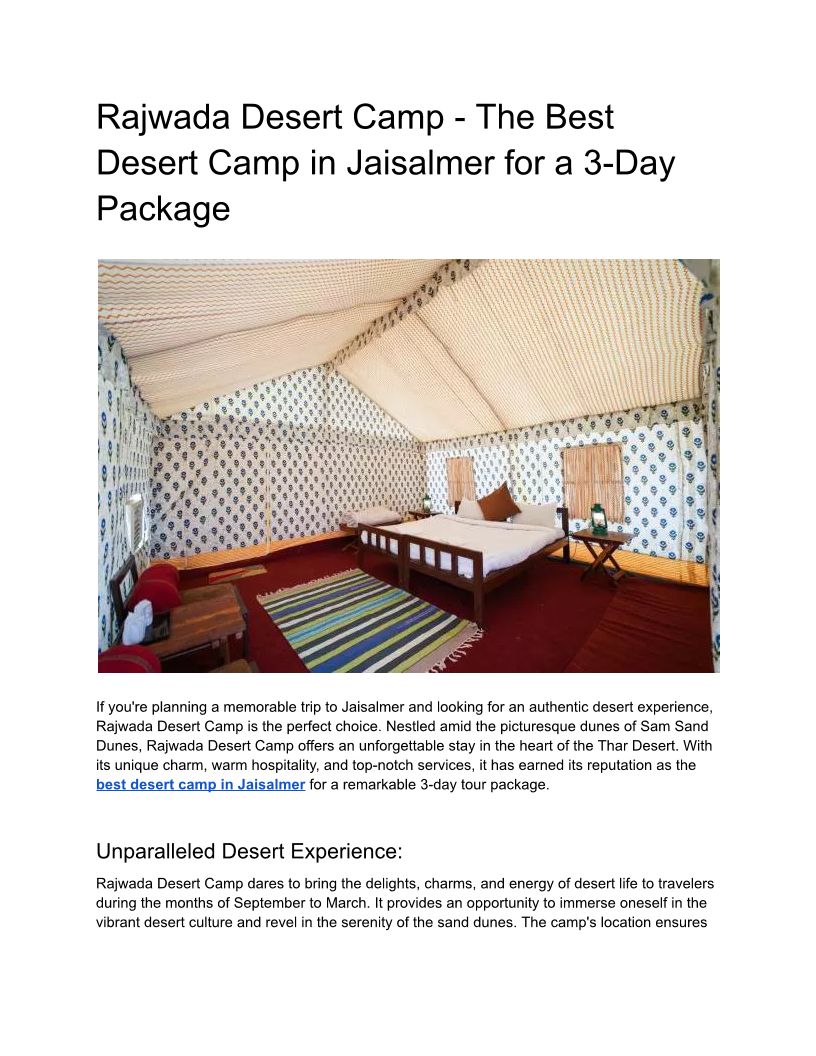 Rajwada Desert Camp - The Be...