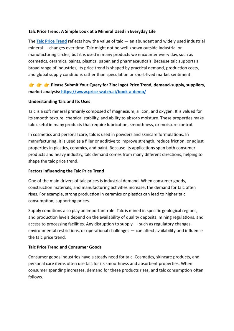 Talc Price Trend: A Simple L...