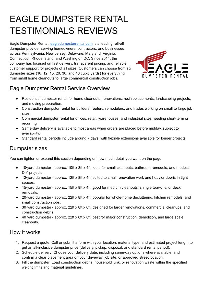 Eagle Dumpster Rental Testim...