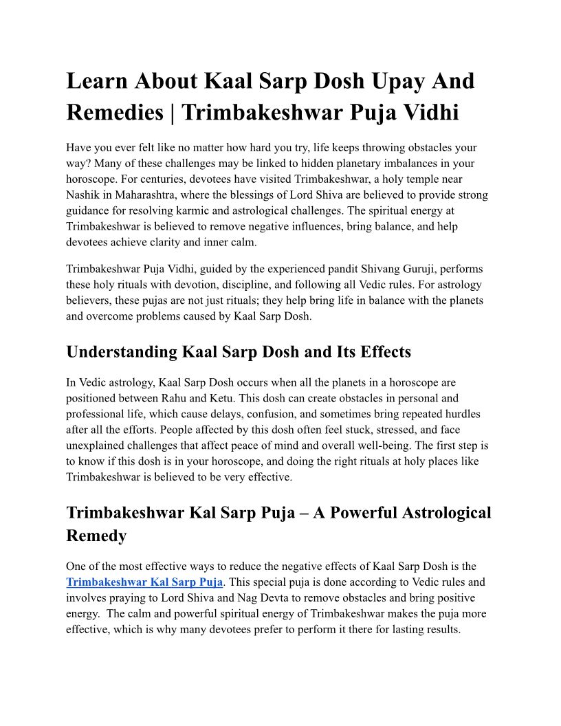 Learn About Kaal Sarp Dosh Upay And Remedies | Trimbakeshwar Puja Vidhi