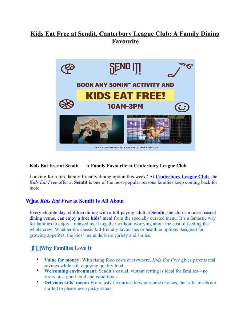Family Dining Made Easy: Kids Eat Free at Sendit, Canterbury League Club