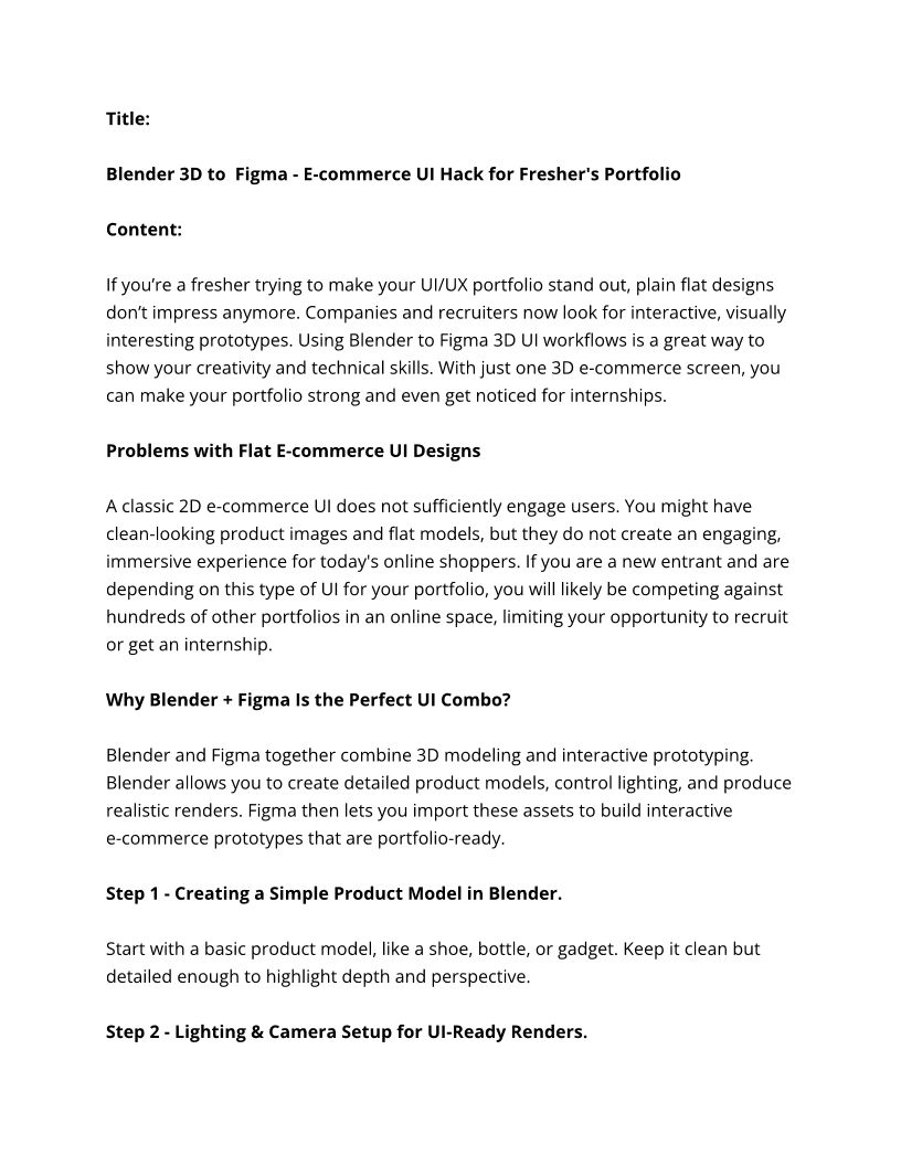 Blender 3D to Figma - E-commerce UI Hack for Fresher's Portfolio