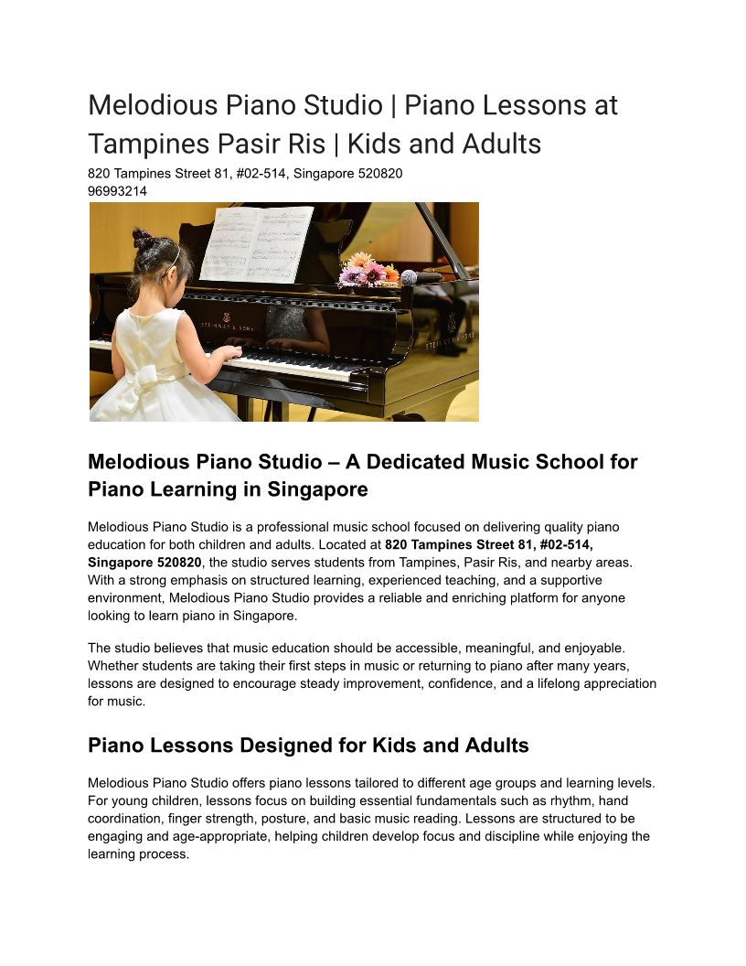 Melodious Piano Studio – Quality Piano Education for Kids and Adults in Tampines & Pasir Ris