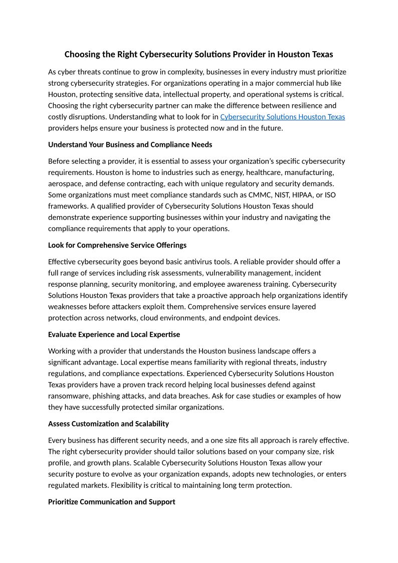 Choosing the Right Cybersecurity Solutions Provider in Houston Texas