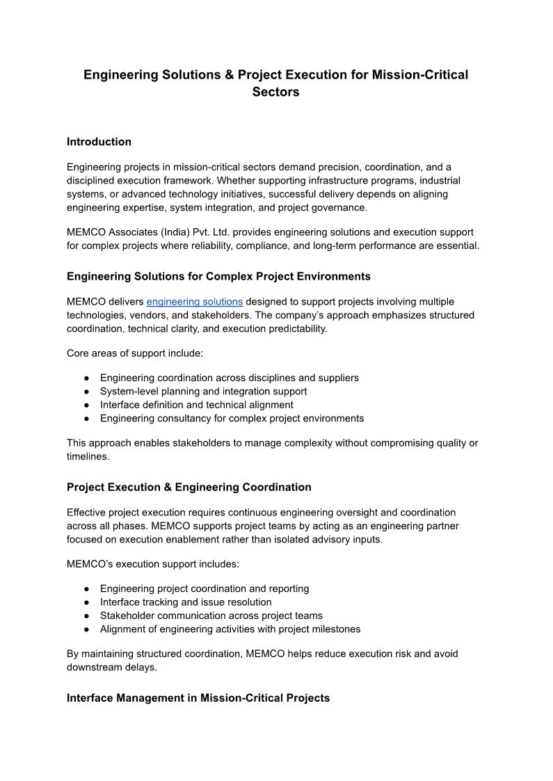 Engineering Solutions & Project Execution for Mission-Critical Sectors