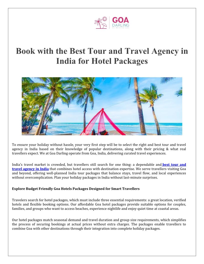 Book with the Best Tour and Travel Agency in India for Hotel Packages