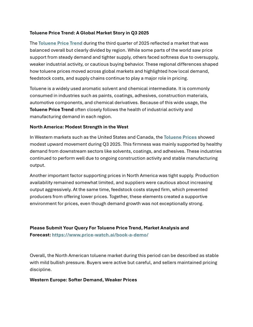 Toluene Price Trend: A Global Market Story in Q3 2025