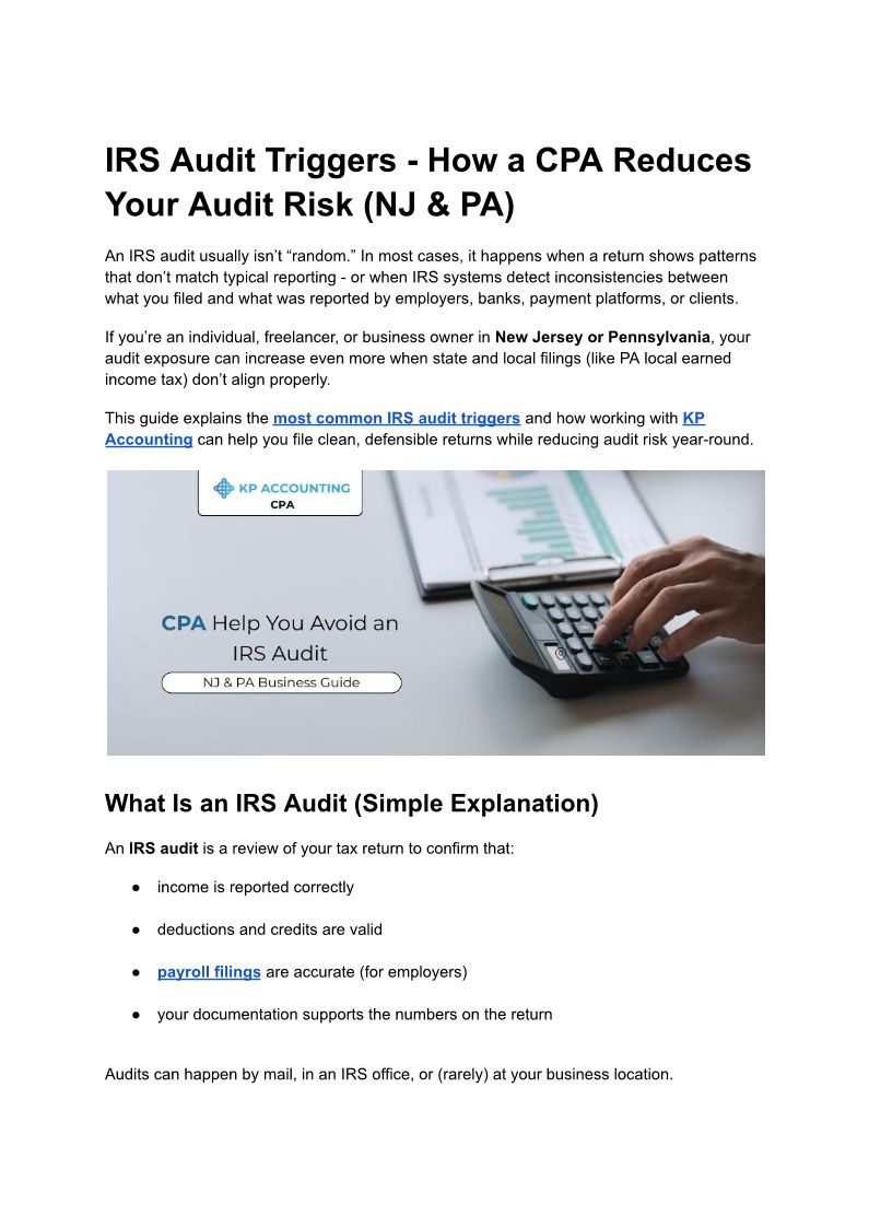 IRS Audit Triggers - How a CPA Reduces Your Audit Risk (NJ & PA)