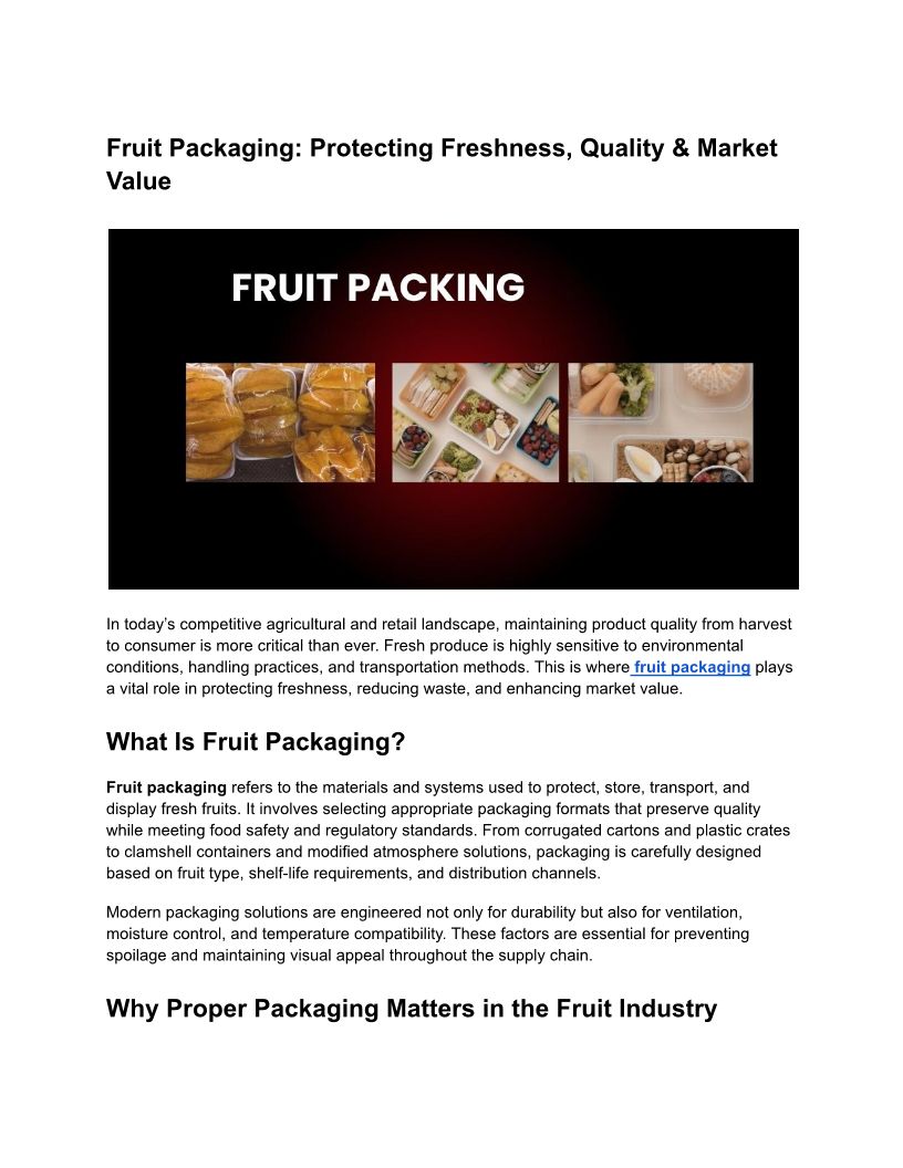 Fruit Packaging: Protecting Freshness, Quality & Market Value
