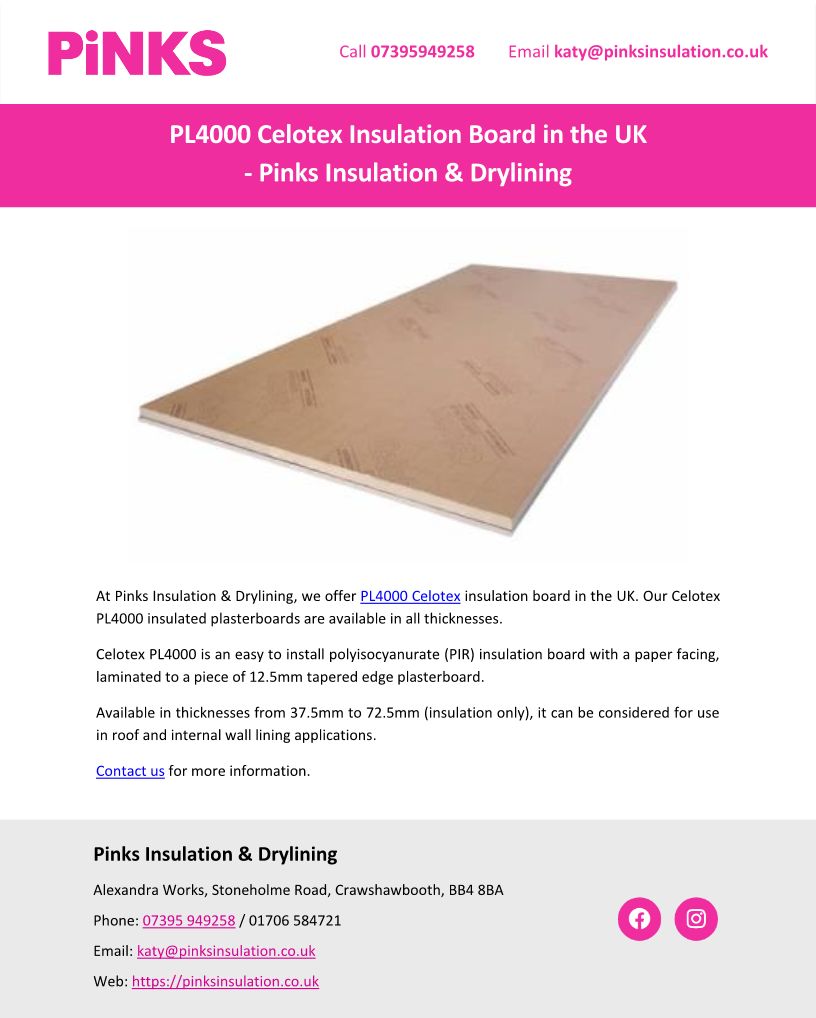 PL4000 Celotex Insulation Board in the UK - Pinks Insulation & Drylining