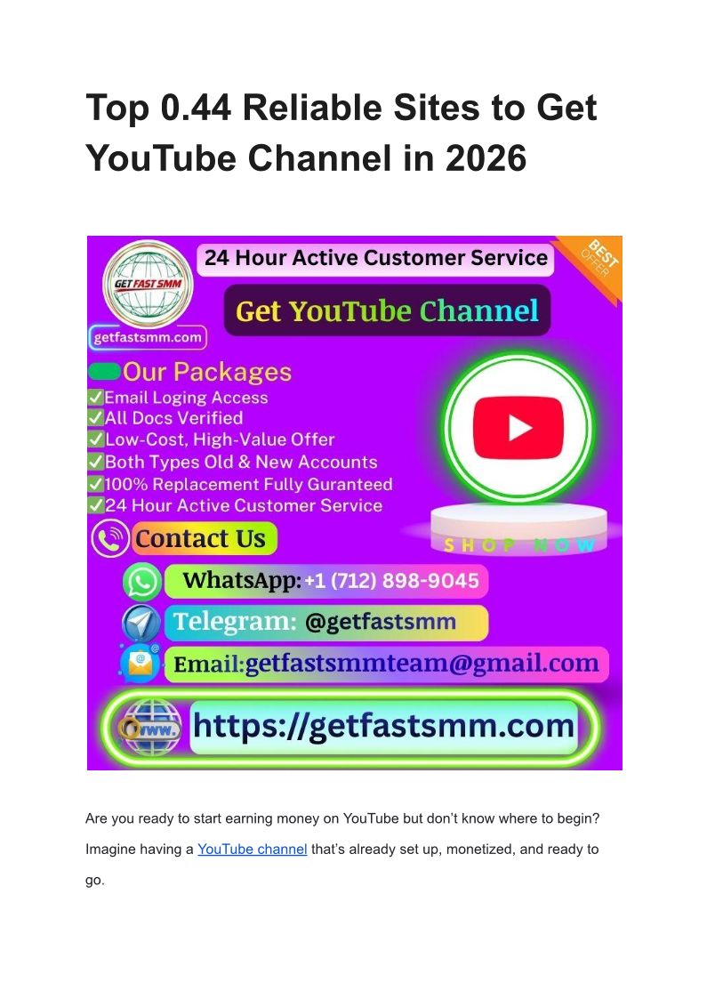 Top 0.44 Reliable Sites to Get YouTube Channel in 2026