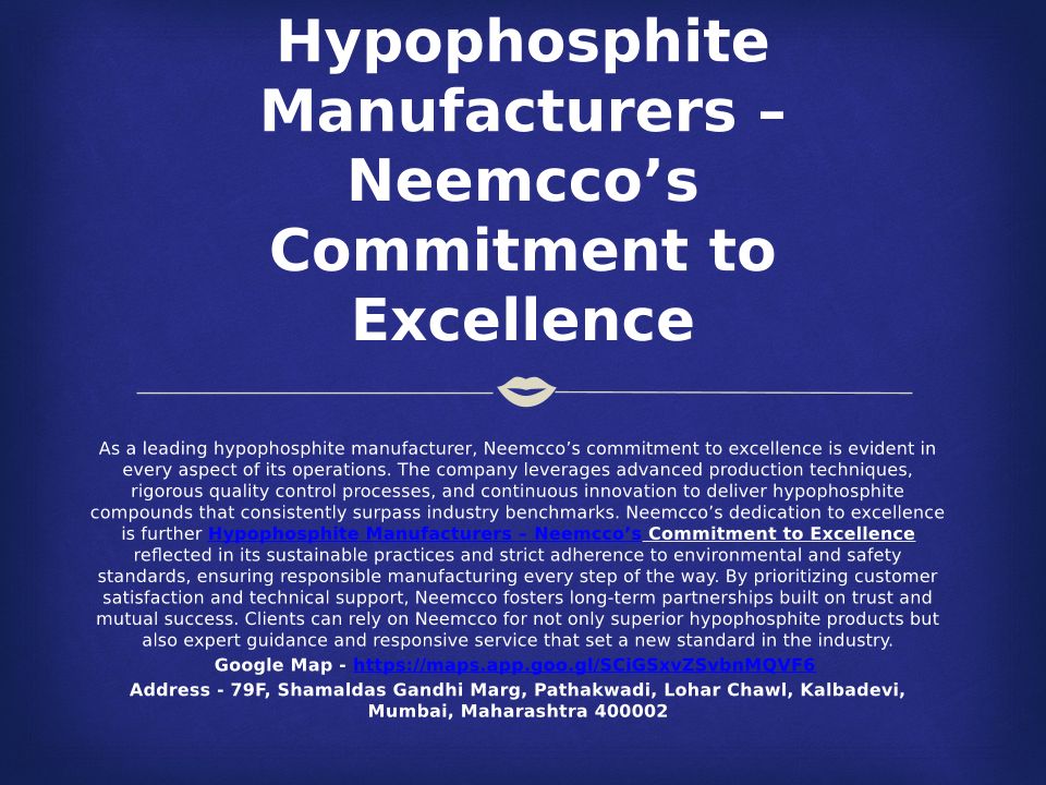 Hypophosphite Manufacturers – Neemcco’s Commitment to Excellence