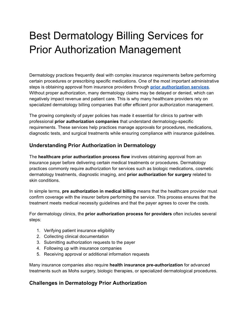 Best Dermatology Billing Services for Prior Authorization Management