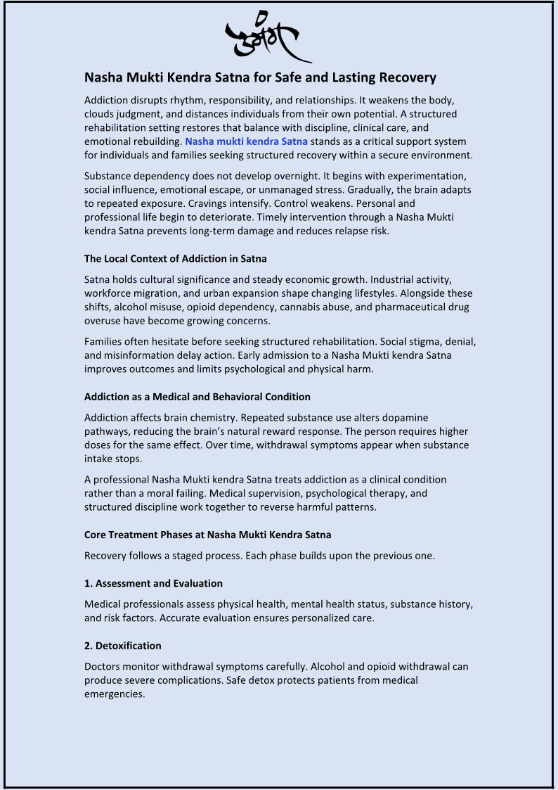 Nasha Mukti Kendra Satna for Safe and Lasting Recovery