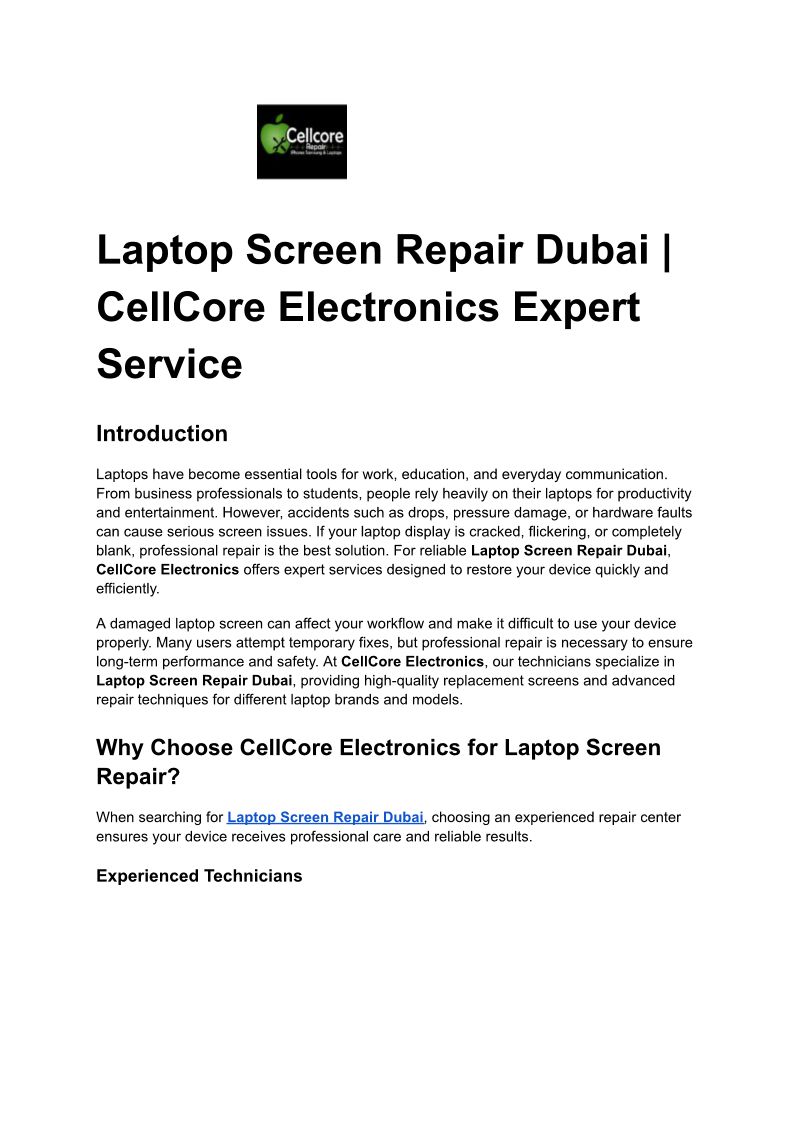 Laptop Screen Repair Dubai _ CellCore Electronics Expert Service