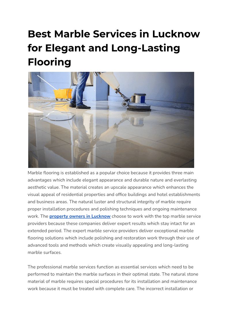 Best Marble Services in Lucknow for Elegant and Long-Lasting Flooring