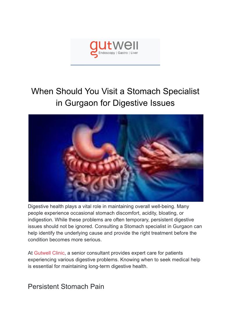 When Should You Visit a Stomach Specialist in Gurgaon for Digestive Issues