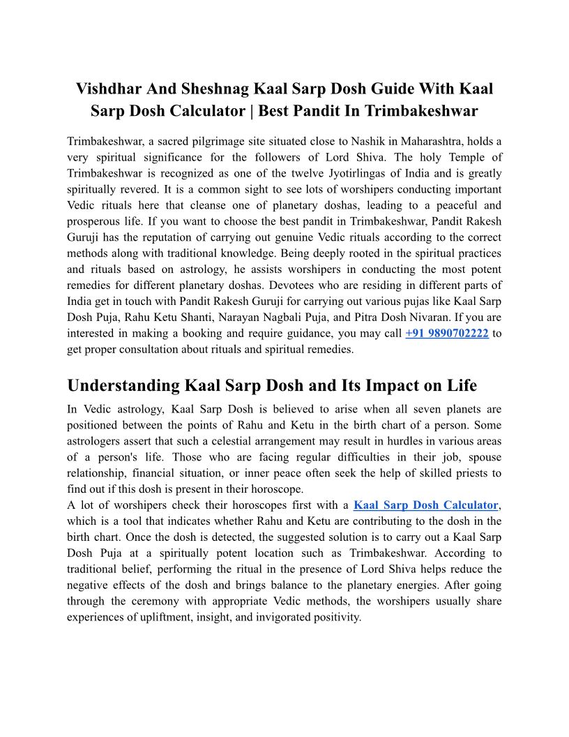 Vishdhar And Sheshnag Kaal Sarp Dosh Guide With Kaal Sarp Dosh Calculator _ Best Pandit In Trimbakeshwar