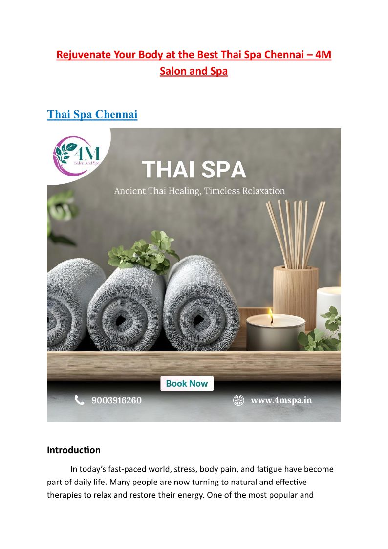 Rejuvenate Your Body at the Best Thai Spa Chennai – 4M Salon and Spa