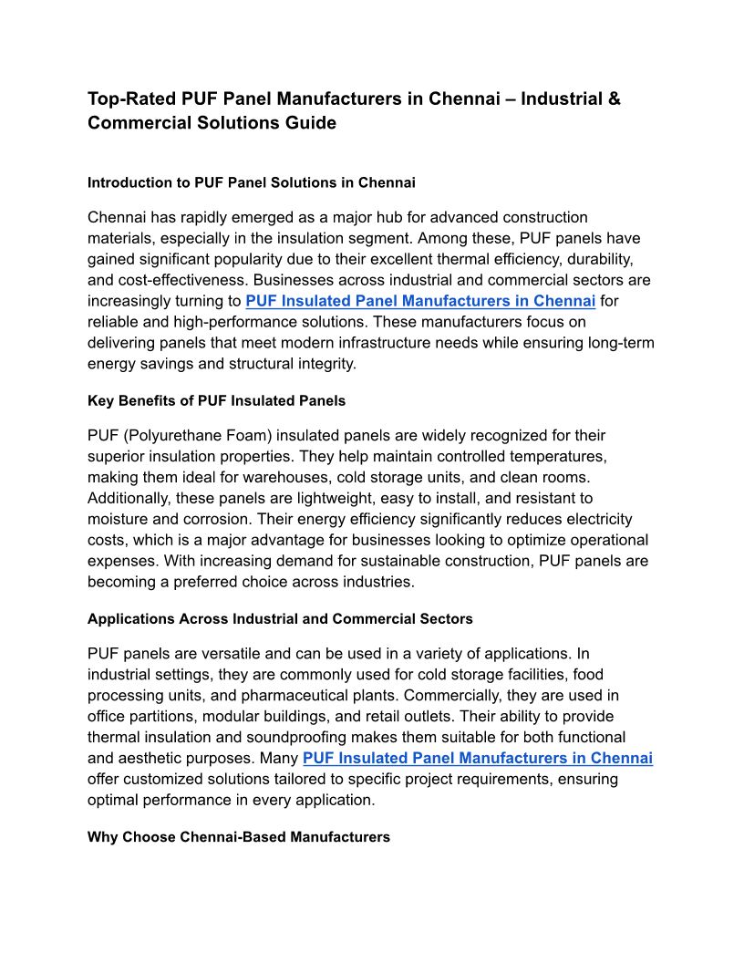 Top-Rated PUF Panel Manufacturers in Chennai – Industrial & Commercial Solutions Guide