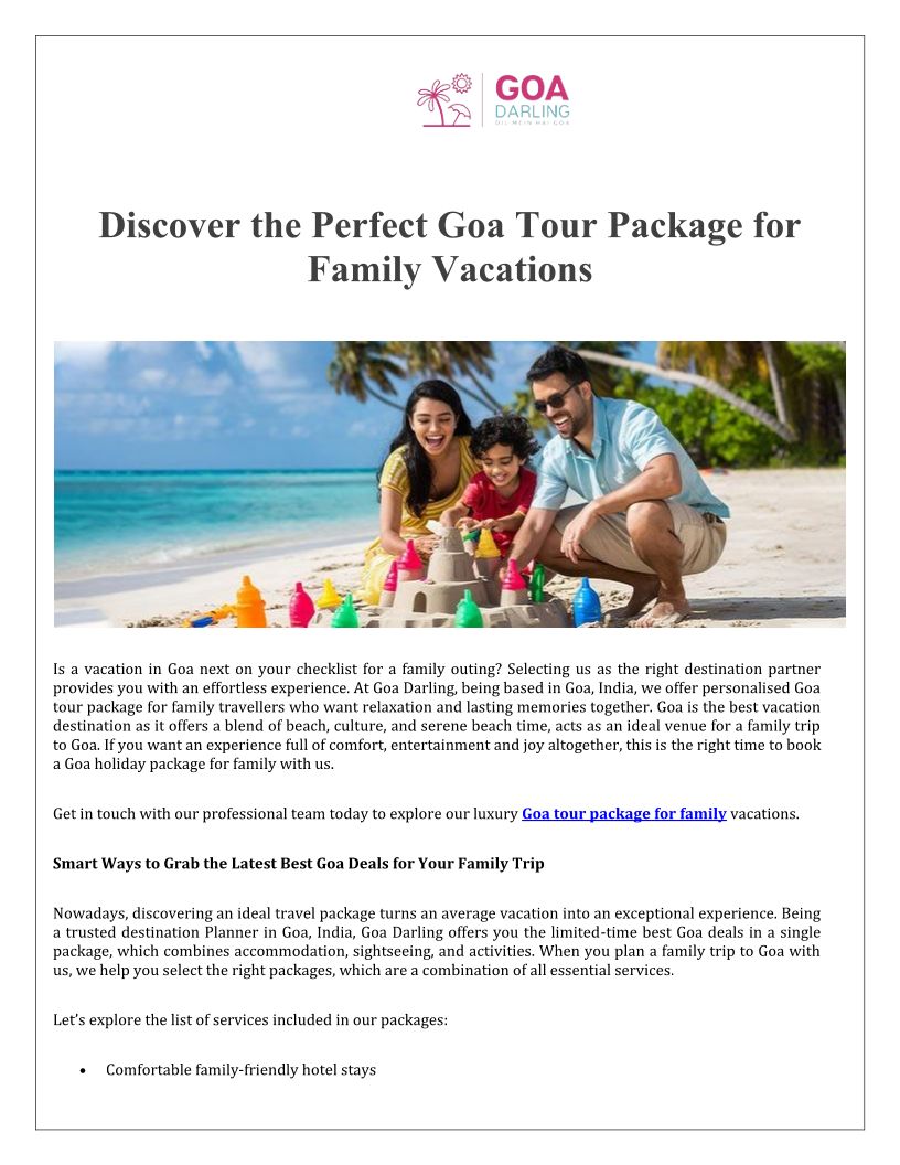 Discover the Perfect Goa Tour Package for Family Vacations