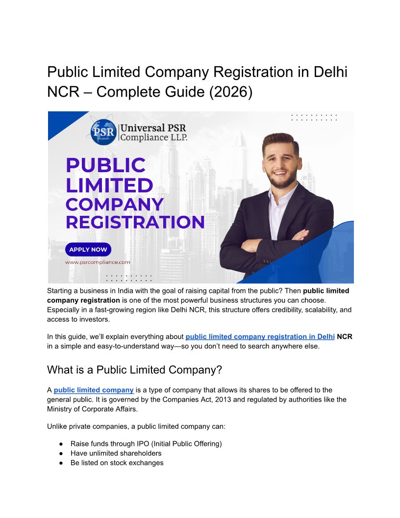 Public Limited Company Registration in Delhi NCR – Complete Guide (2026)