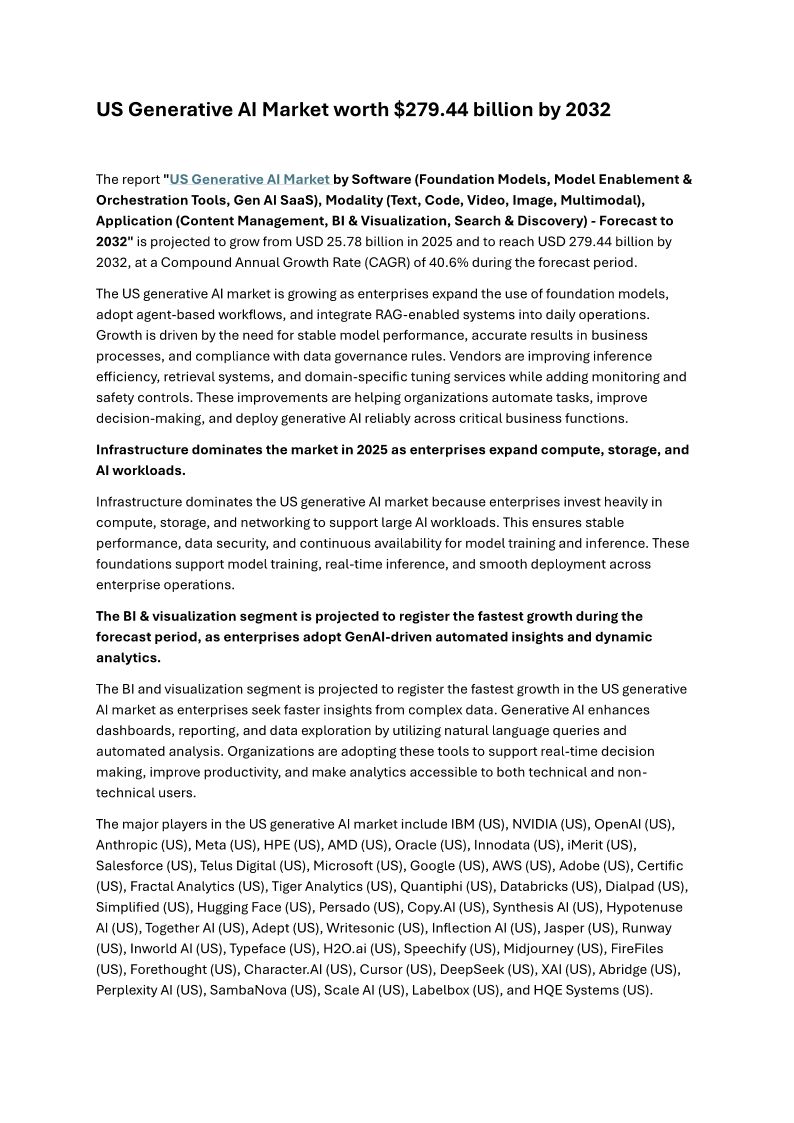 US Generative AI Market worth $279.44 billion by 2032