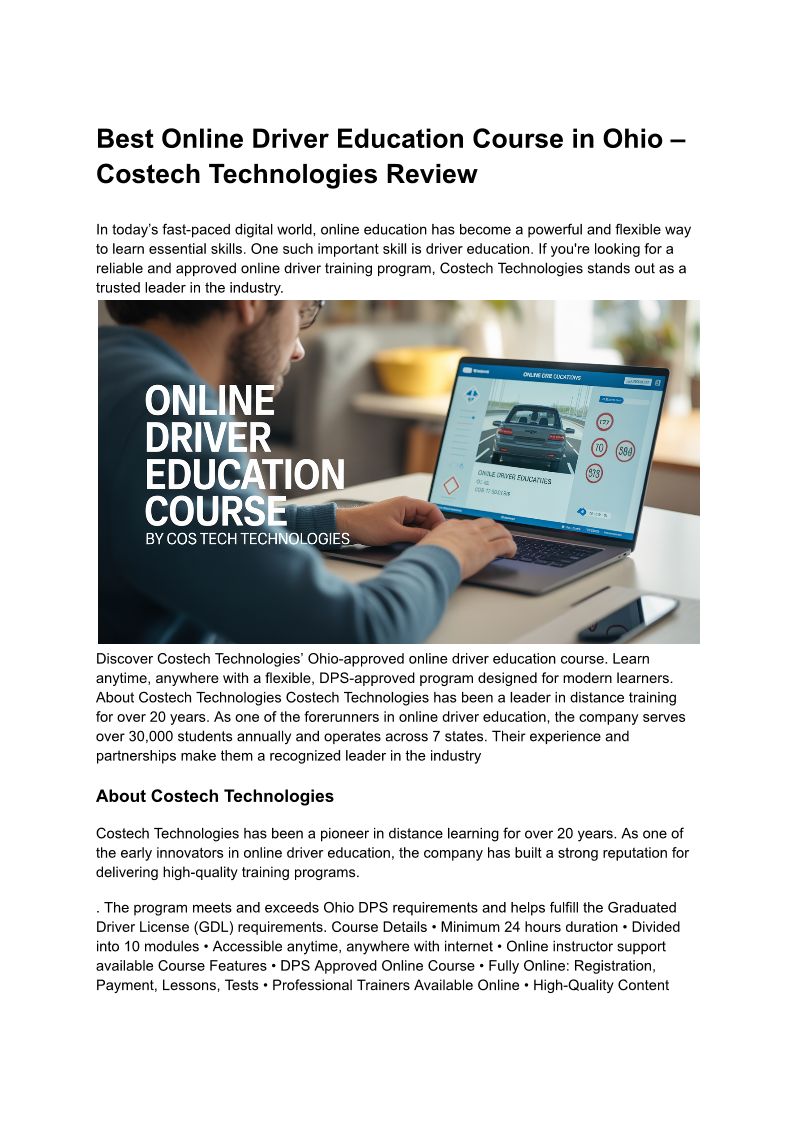 Best Online Driver Education Course in Ohio – Costech Technologies Review