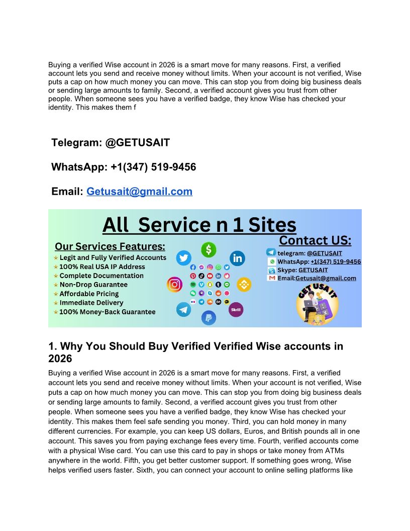 Best Premium 24 Sites To Buy Verified Wise Accounts In 2026 (Unlimited ^Global Ready)_