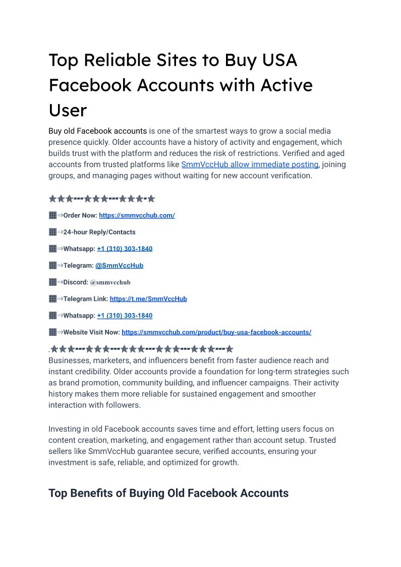 Top 3 Reliable Sites to Buy USA Facebook Accounts with Active User