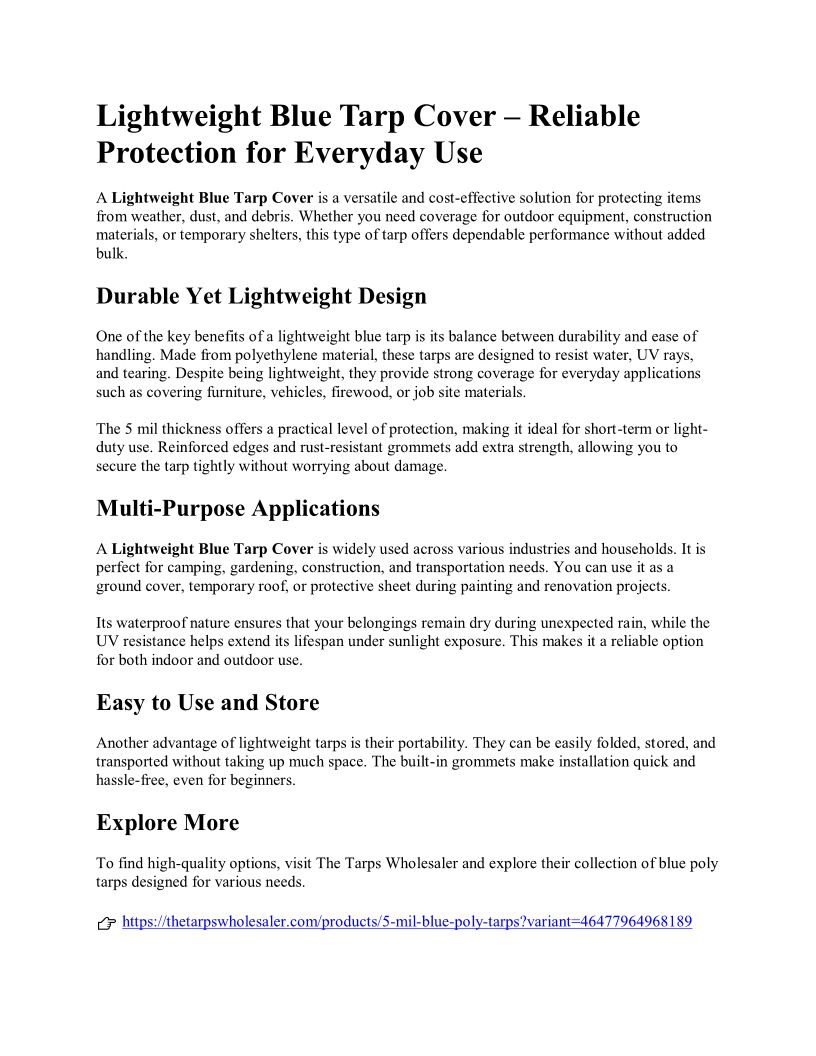 Lightweight Blue Tarp Cover – Reliable Protection for Everyday Use