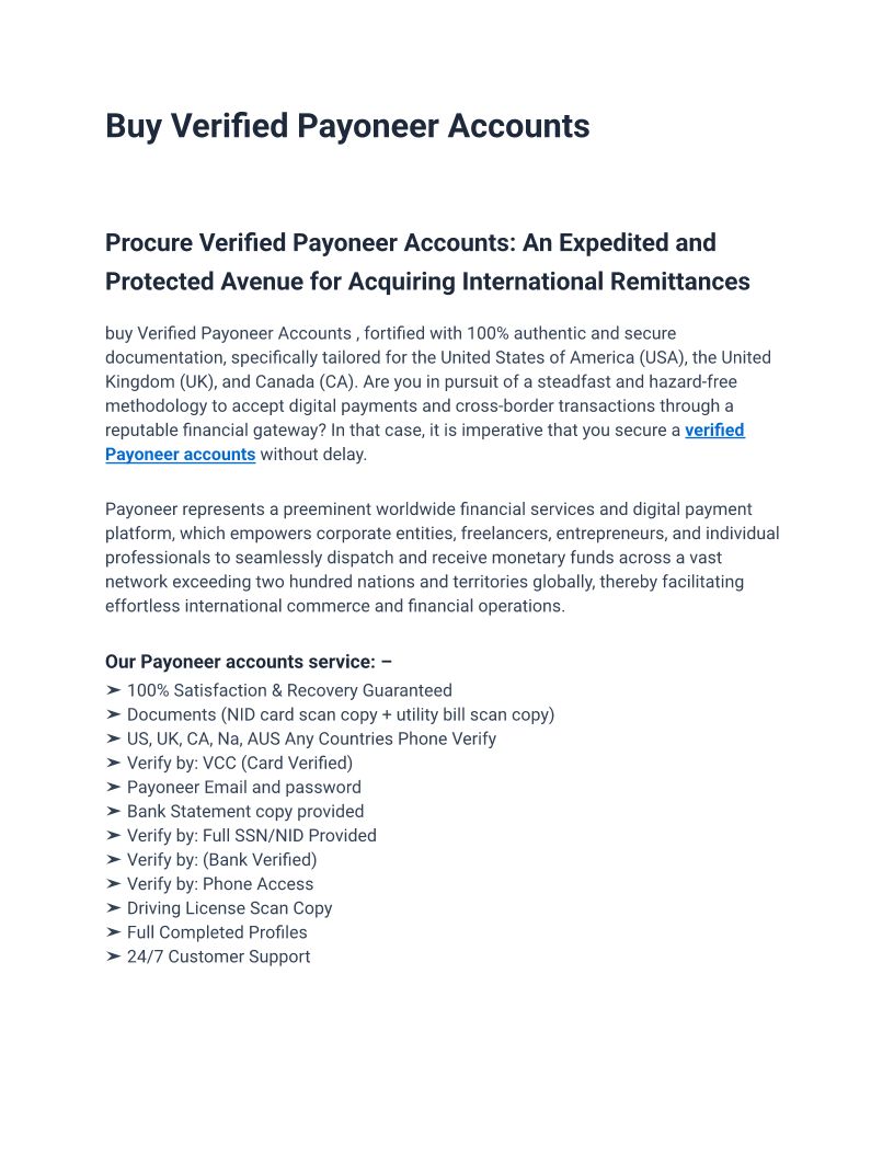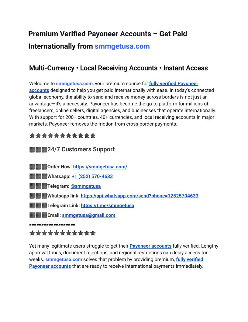 Premium Verified Payoneer Accounts – Get Paid Internationally from Smmgetusa