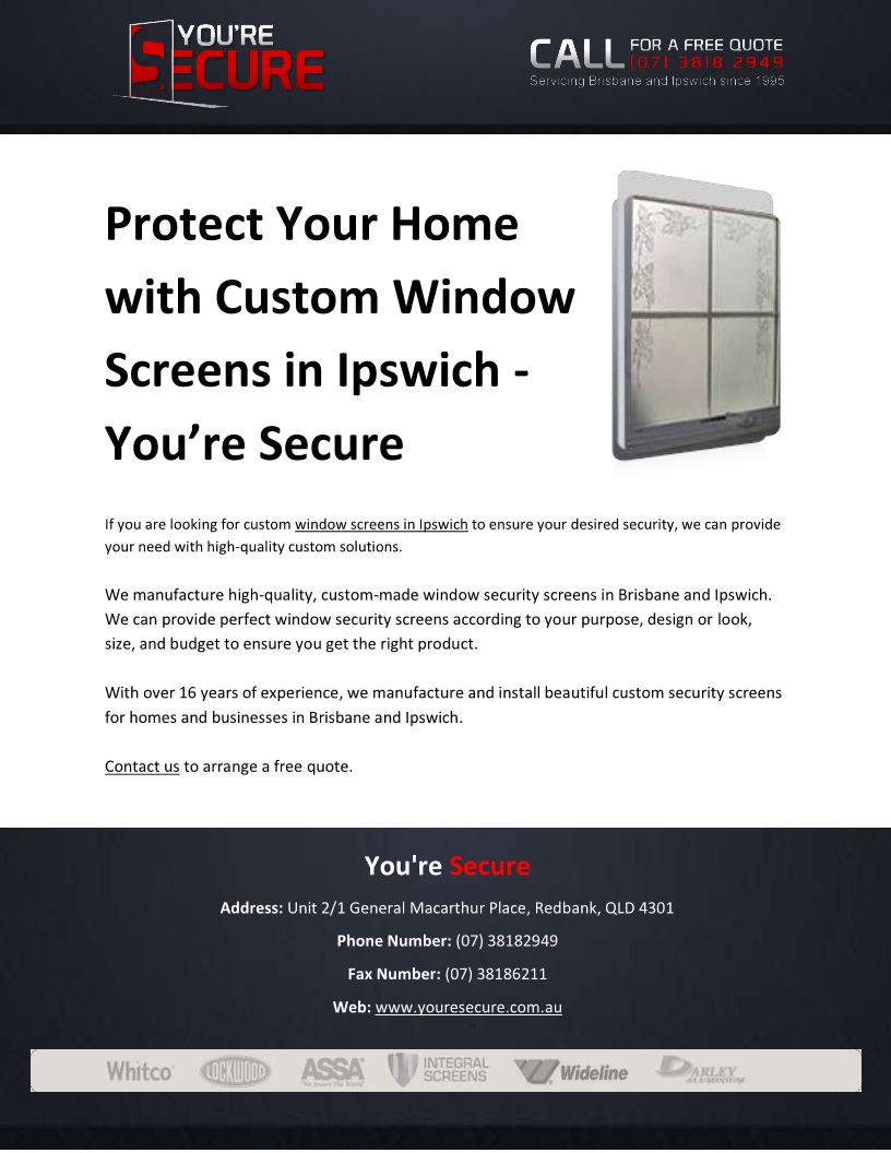 Protect Your Home with Custom Window Screens in Ipswich - You’re Secure