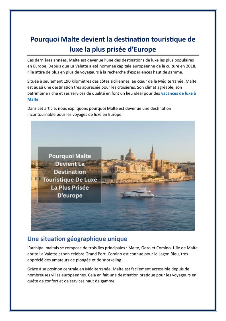 Pourquoi Malte devient la destination touristique de luxe la plus prisée d
