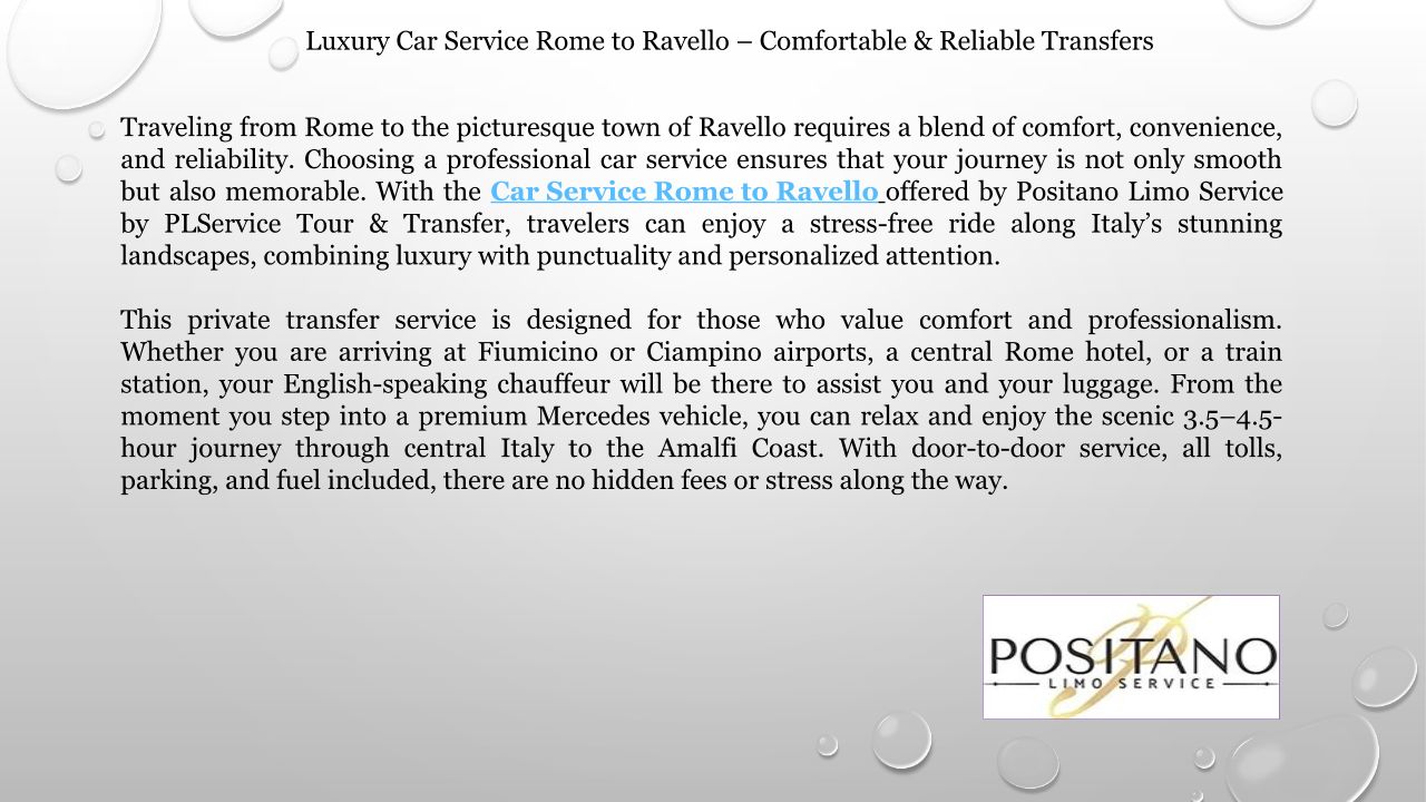 Luxury Car Service Rome to Ravello – Comfortable & Reliable Transfers