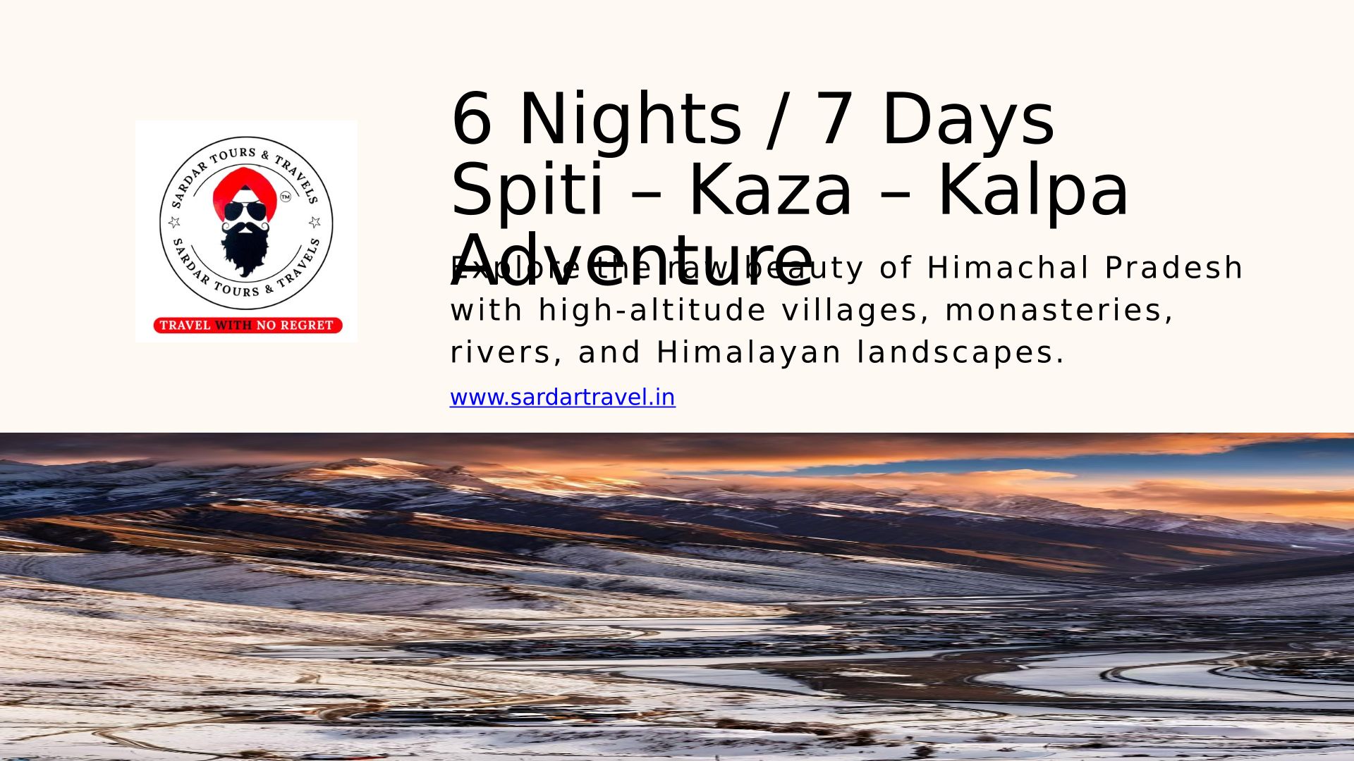 6 Nights 7 Days Spiti Valley Tour Package – Kaza & Kalpa Adventure