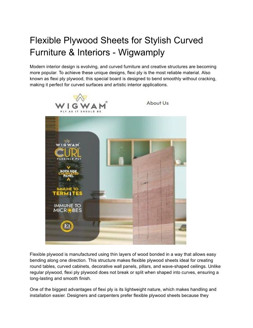 Flexible Plywood Sheets for Stylish Curved Furniture & Interiors - Wigwamply