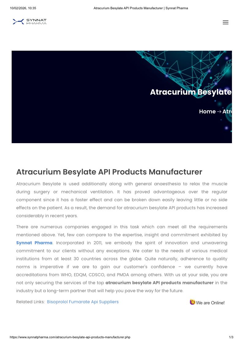 Atracurium Besylate API Products Manufacturer _ Synnat Pharma