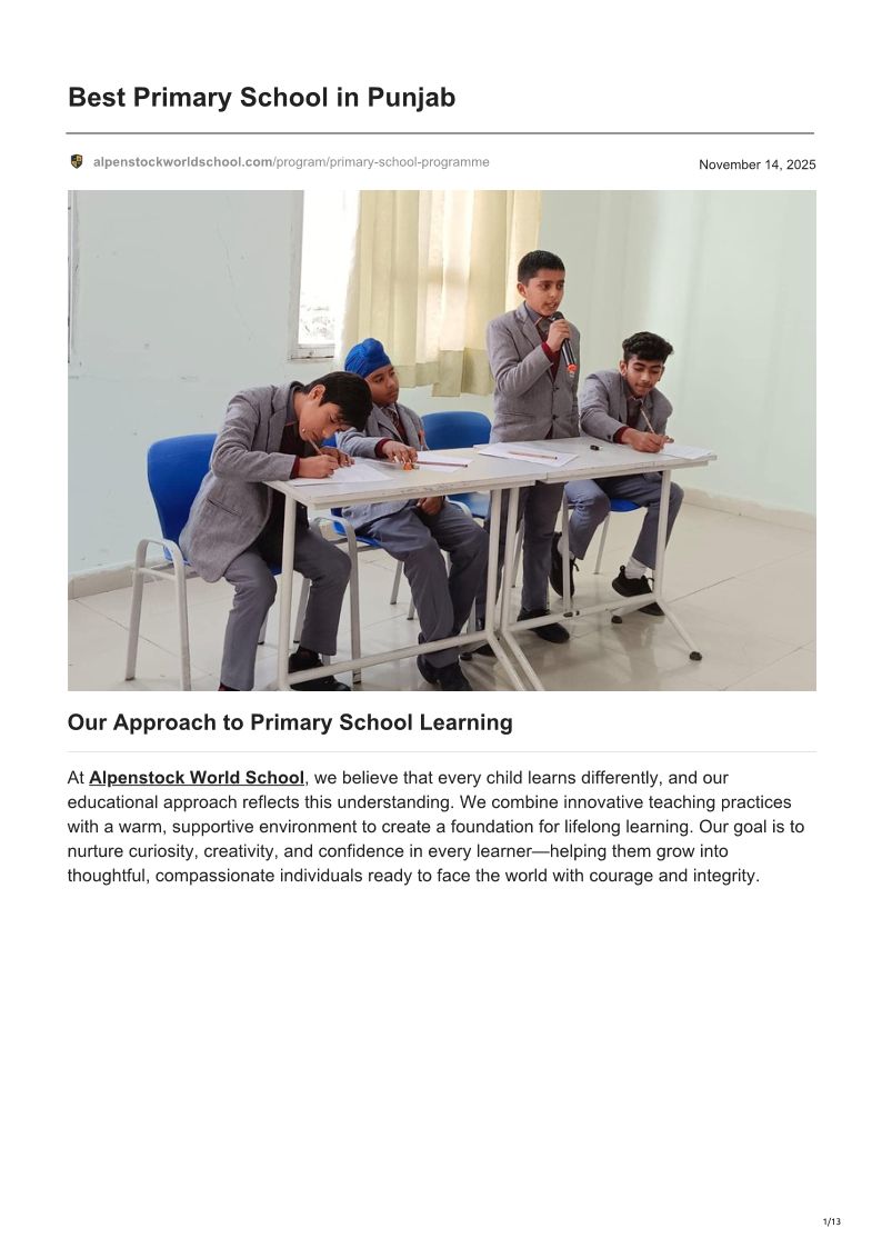 Our Approach to Primary School Learning - Alpenstock World School