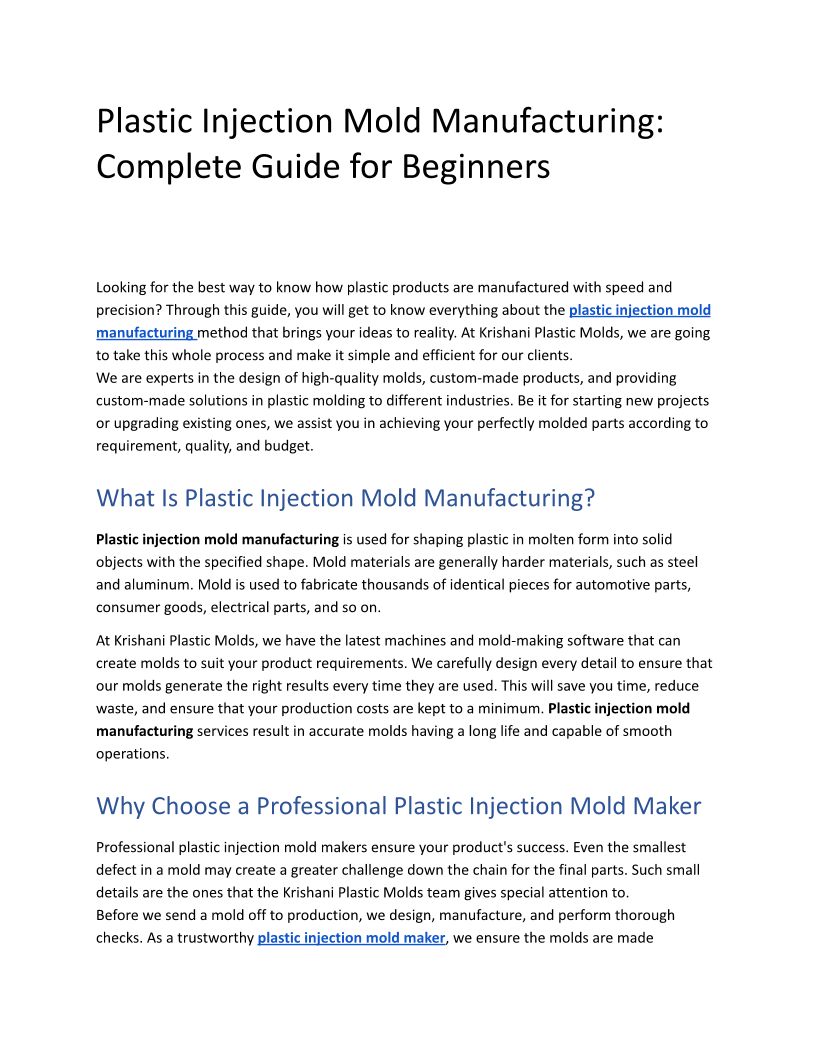 Plastic Injection Mold Manufacturing_ Complete Guide for Beginners