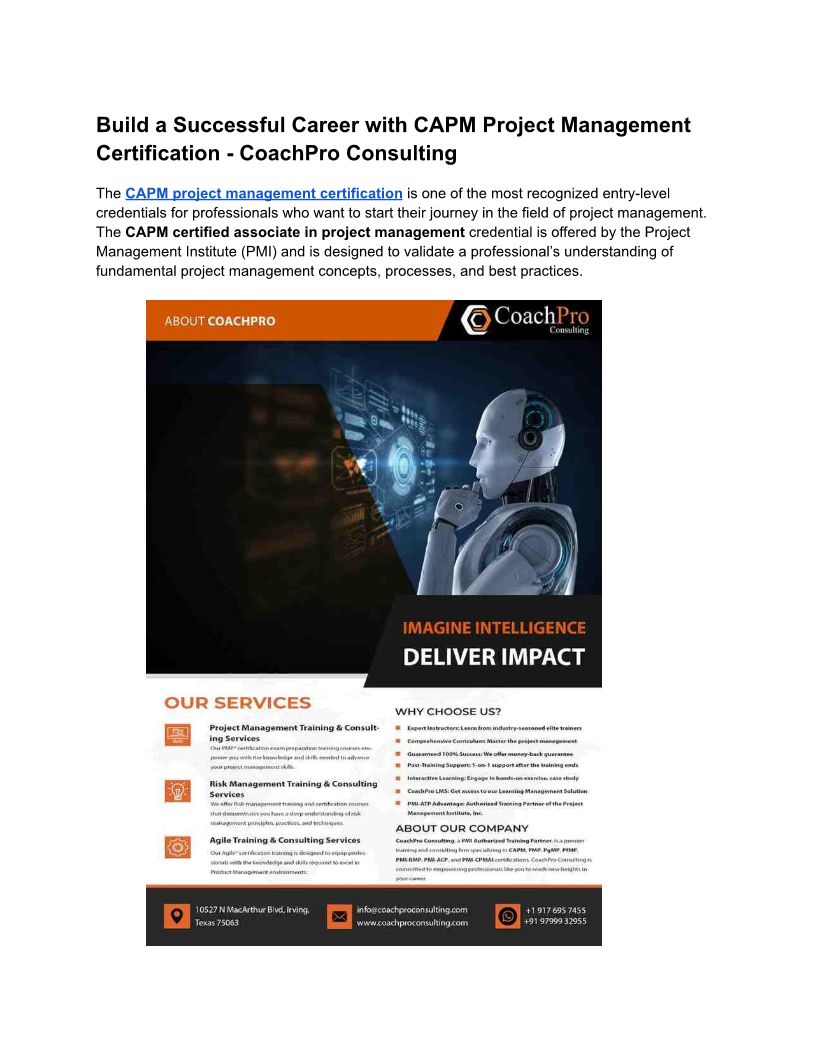 Build a Successful Career with CAPM Project Management Certification - CoachPro Consulting