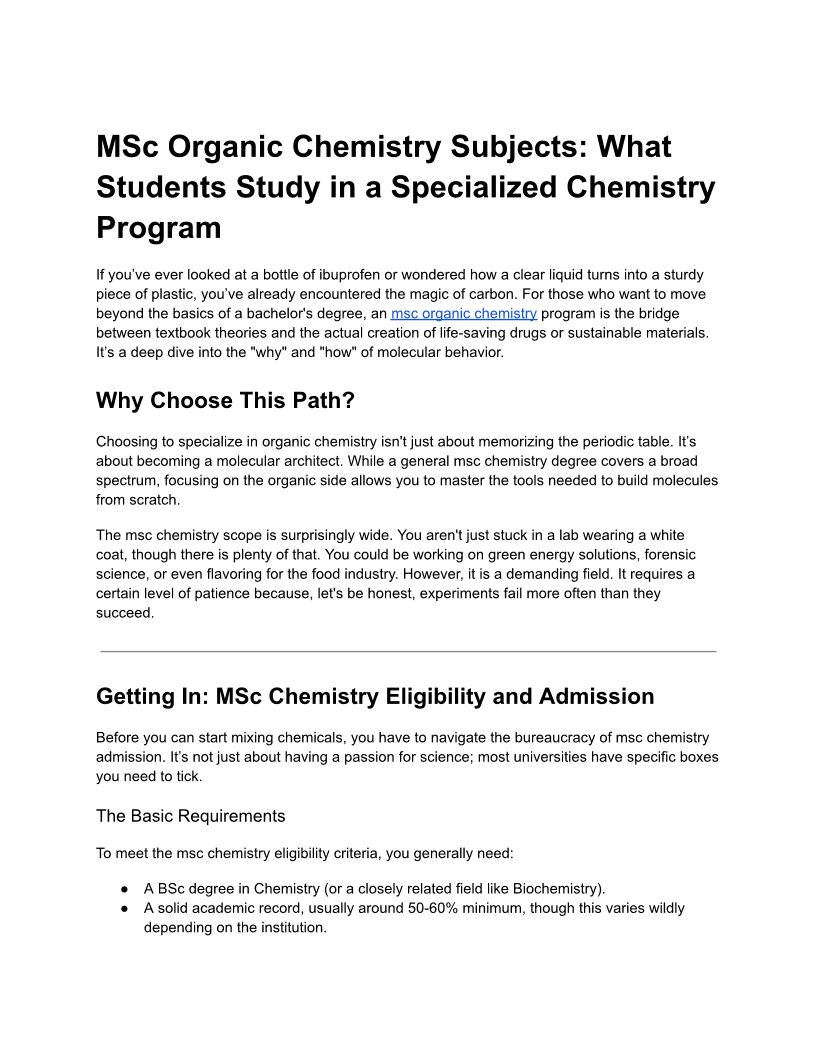 MSc Organic Chemistry Subjects: What Students Study in a Specialized Chemistry Program