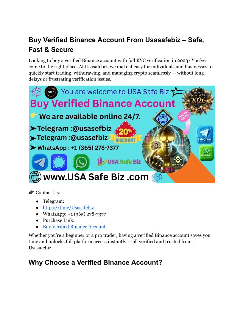 1Buy Verified Binance Account From Usasafebiz – Safe, Fast & Secure