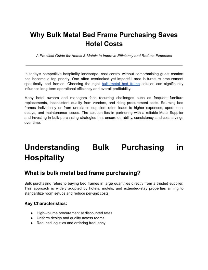 Why Bulk Metal Bed Frame Purchasing Saves Hotel Costs