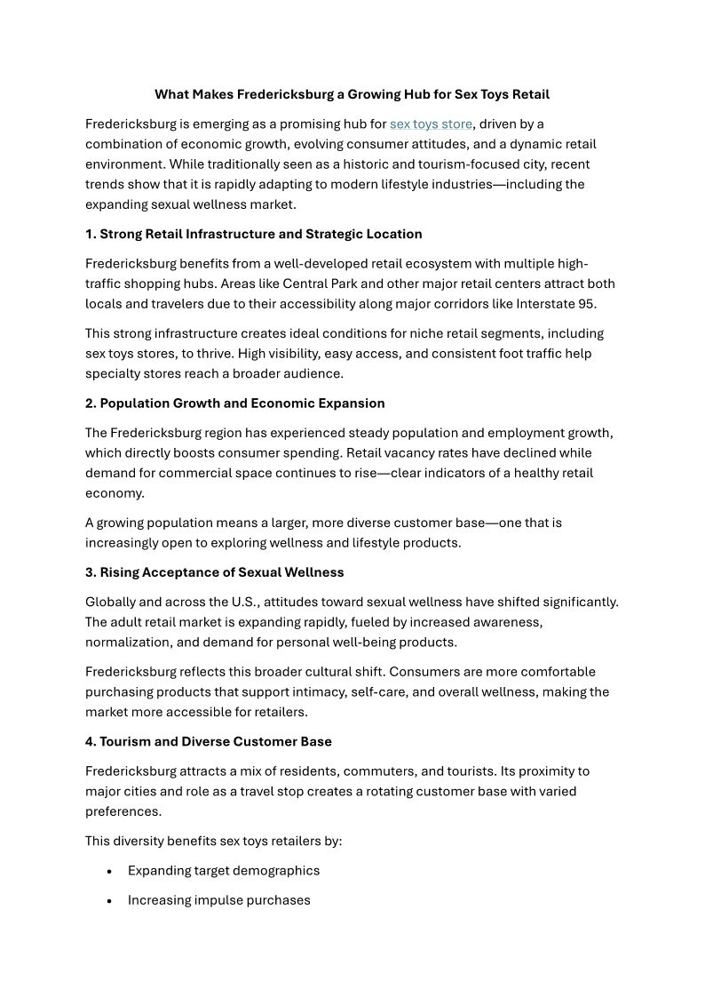 What Makes Fredericksburg a Growing Hub for Sex Toys Retail Shop