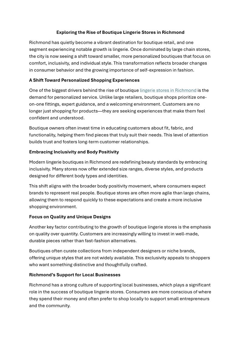 Exploring the Rise of Boutique Lingerie Stores in Richmond